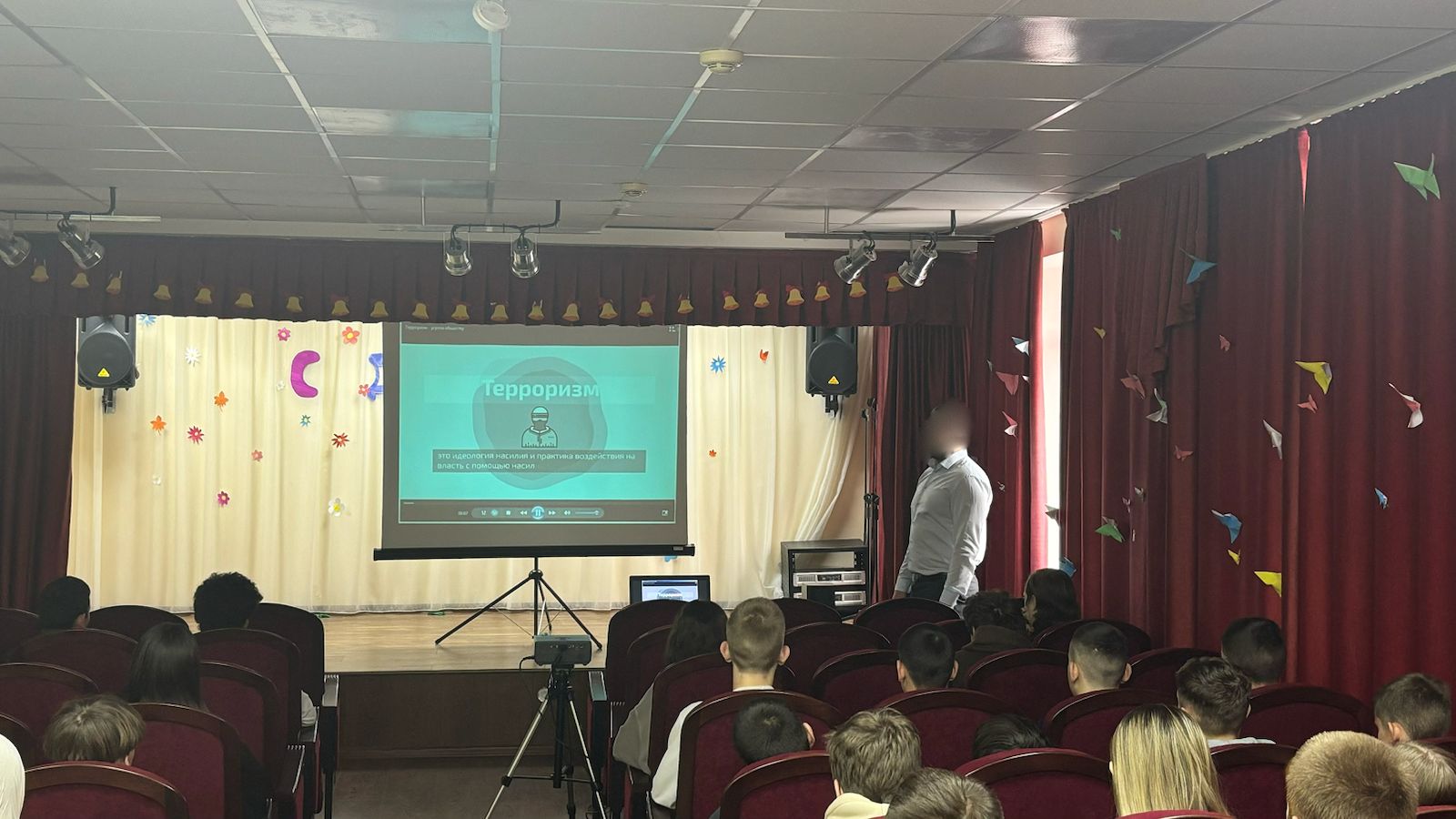 Приглашенный на встречу сотрудник Центра по противодействию экстремизму и терроризму ГУ МВД России по Ставропольскому краю продемонстрировал видеоролики на тему терроризма и экстремизма. В завершении лекции сотрудник органов безопасности обратил внимание слушателей на основы воспитания молодежи и профилактику антиобщественного поведения между учащимися, а также поблагодарил студентов за внимание и продуктивный диалог.