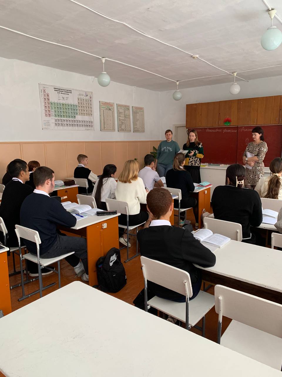 Заведующий приемной комиссии Ставропольского филиала МГЭУ Грязнова Ю.Г. и работник филиала Шапошник О.Д. посетили с профориентационной работой школы поселка Солнечнодольска, станицы Каменнобродской, села Сенгелеевского.