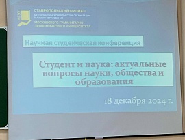 18 декабря 2024 в Ставропольском филиале МГЭУ прошла СТУДЕНЧЕСКАЯ НАУЧНАЯ КОНФЕРЕНЦИЯ «Студент и наука: актуальные вопросы науки, общества и образования».