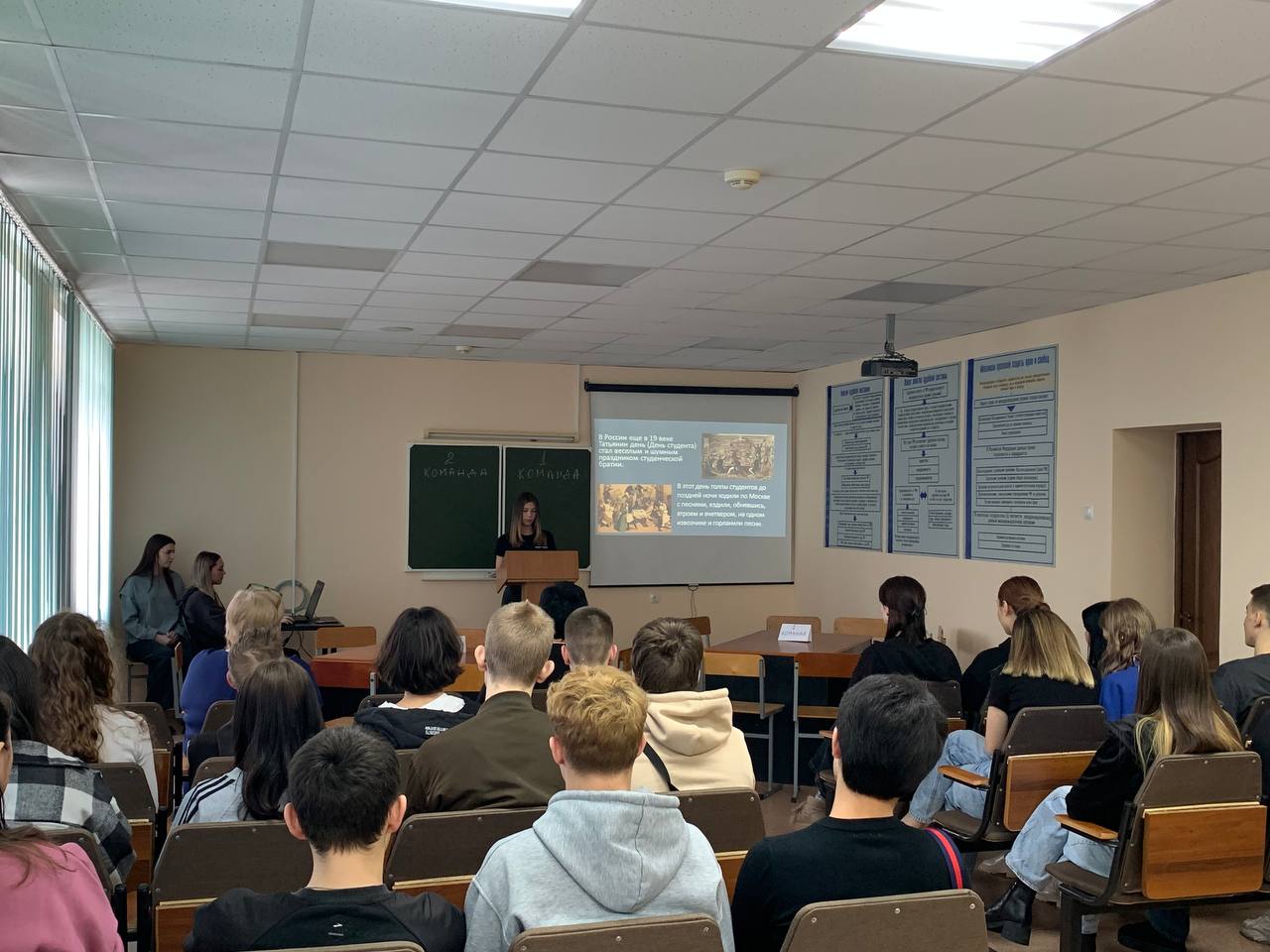Во время игры поздравили всех Татьян и студентов с праздником.