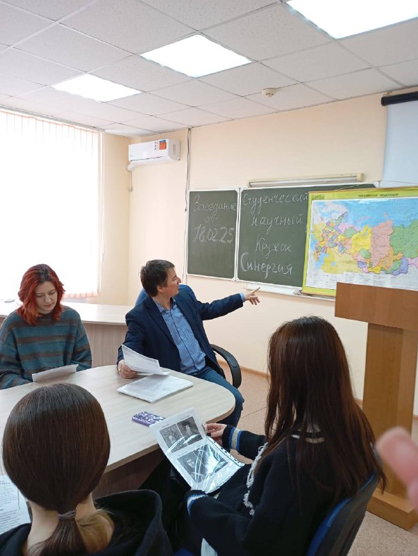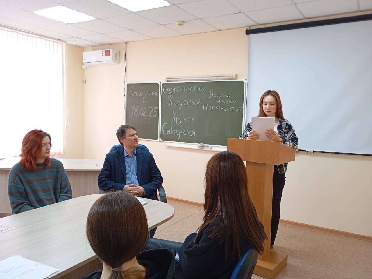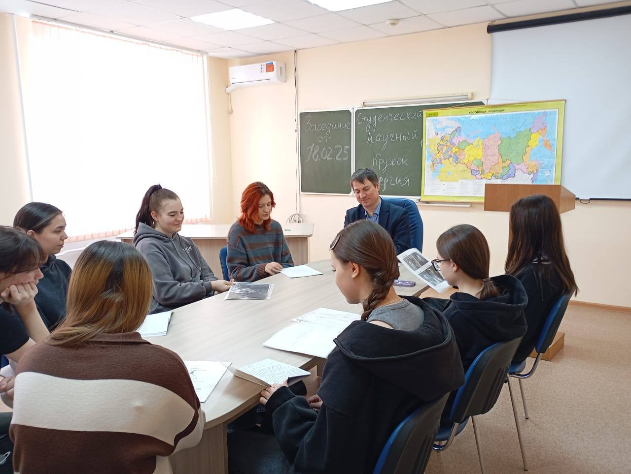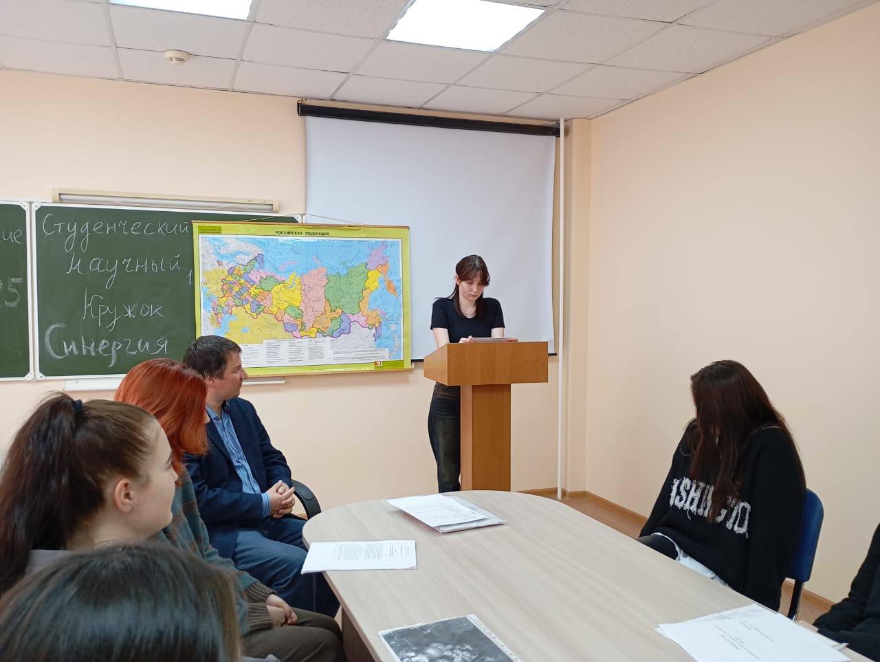 В рамках Недели науки в Ставропольском филиале МГЭУ прошло заседание студенческого научного кружка «Синергия» на тему: «Основы проведения научного исследования на примере развития военного научного потенциала в период СВО» под руководством заведующего кафедрой социально-экономических и гуманитарных дисциплин Марычева В.В.
