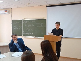 Четверо студентов выступили с докладами-сообщениями, остальные участвовали в активном диспуте. Были обсуждены правила написания студенческих научных статей, военные достижения российской армии в период СВО, научные достижения российских ученых в период СВО.
