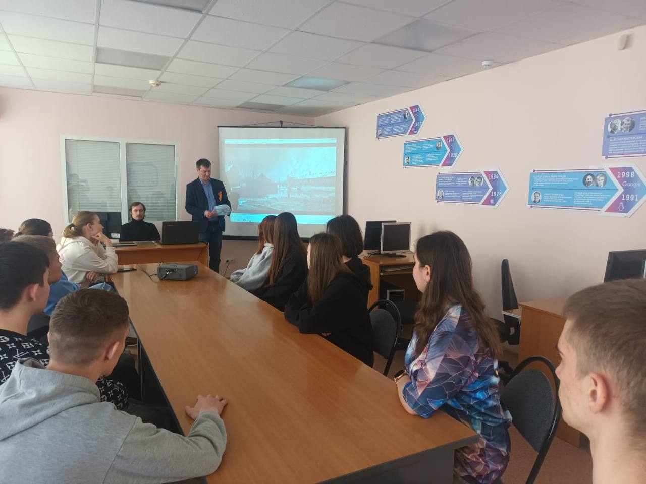 В ходе мероприятия студенты наблюдали видео-фрагменты и презентацию, подготовленные преподавателями, слушали материал, участвовали в беседе и задавали вопросы.