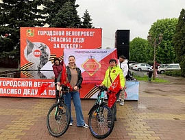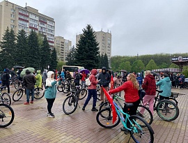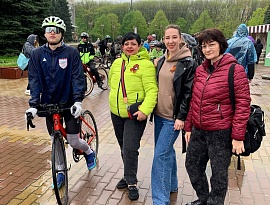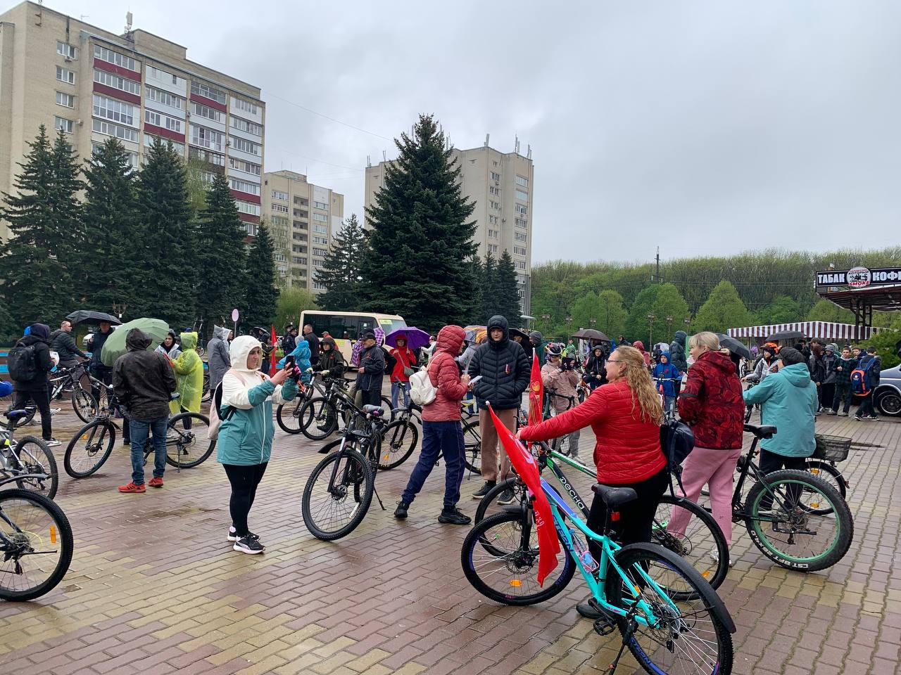 Несмотря на дождливую погоду участники велопробега собрались и проехали по улицам города, чтобы почтить память наших героических предков.