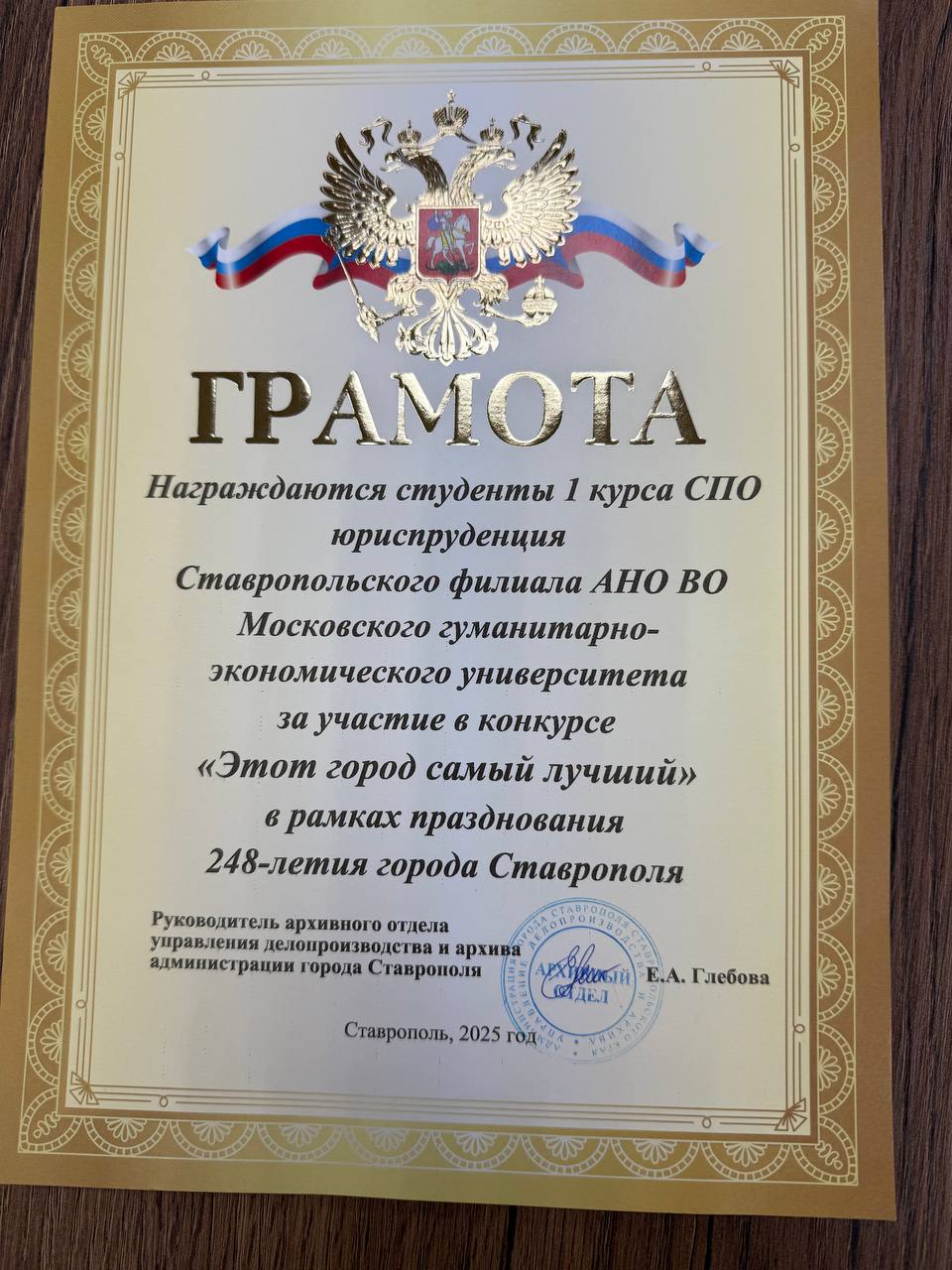Победившие команды получили грамоты от руководителя архивного отдела управления делопроизводства и архива администрации города Ставрополя Глебовой Елены Александровны.