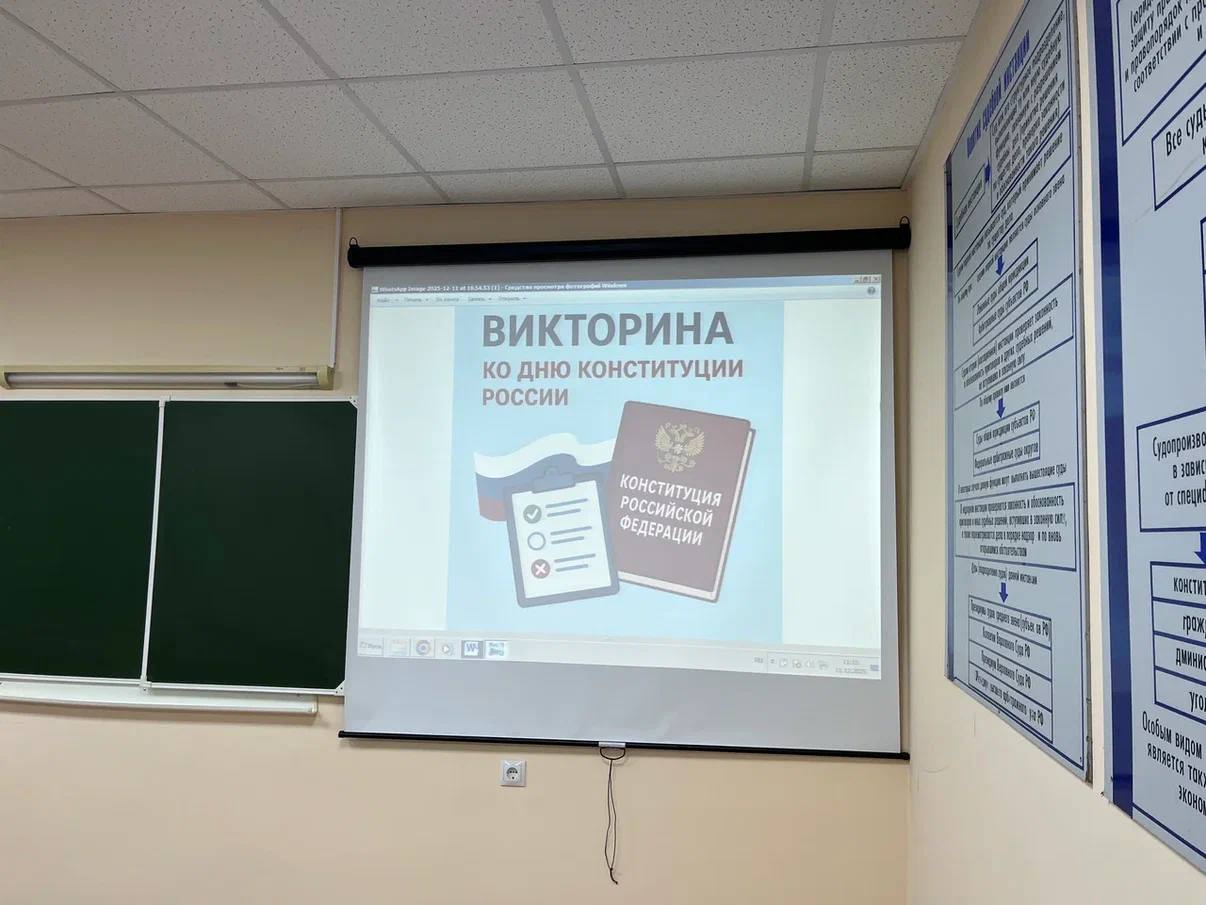 Для студентов среднего профессионального образования преподавателем кафедры общеобразовательных и социально-гуманитарных дисциплин Благовой Анастасией Андреевной проведена интерактивная викторина «Знатоки Конституции РФ».