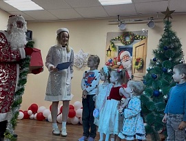 Сказочные герои увлекли ребят в волшебный мир, в котором они встретились с Дедушкой Морозом, Снегурочкой, Тигрулей. Вместе они разгадывали загадки, играли в «снежки» танцевали и водили хоровод.