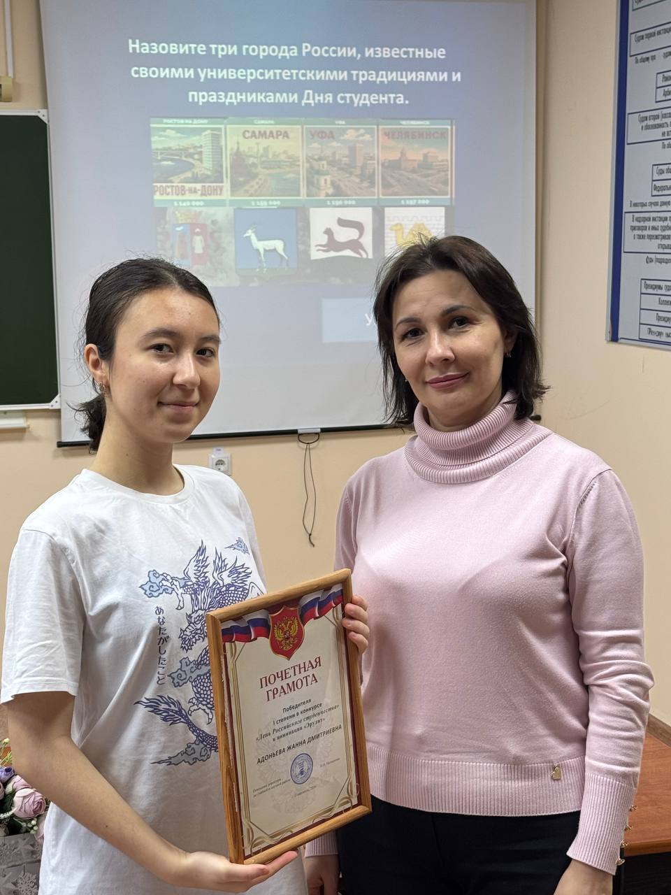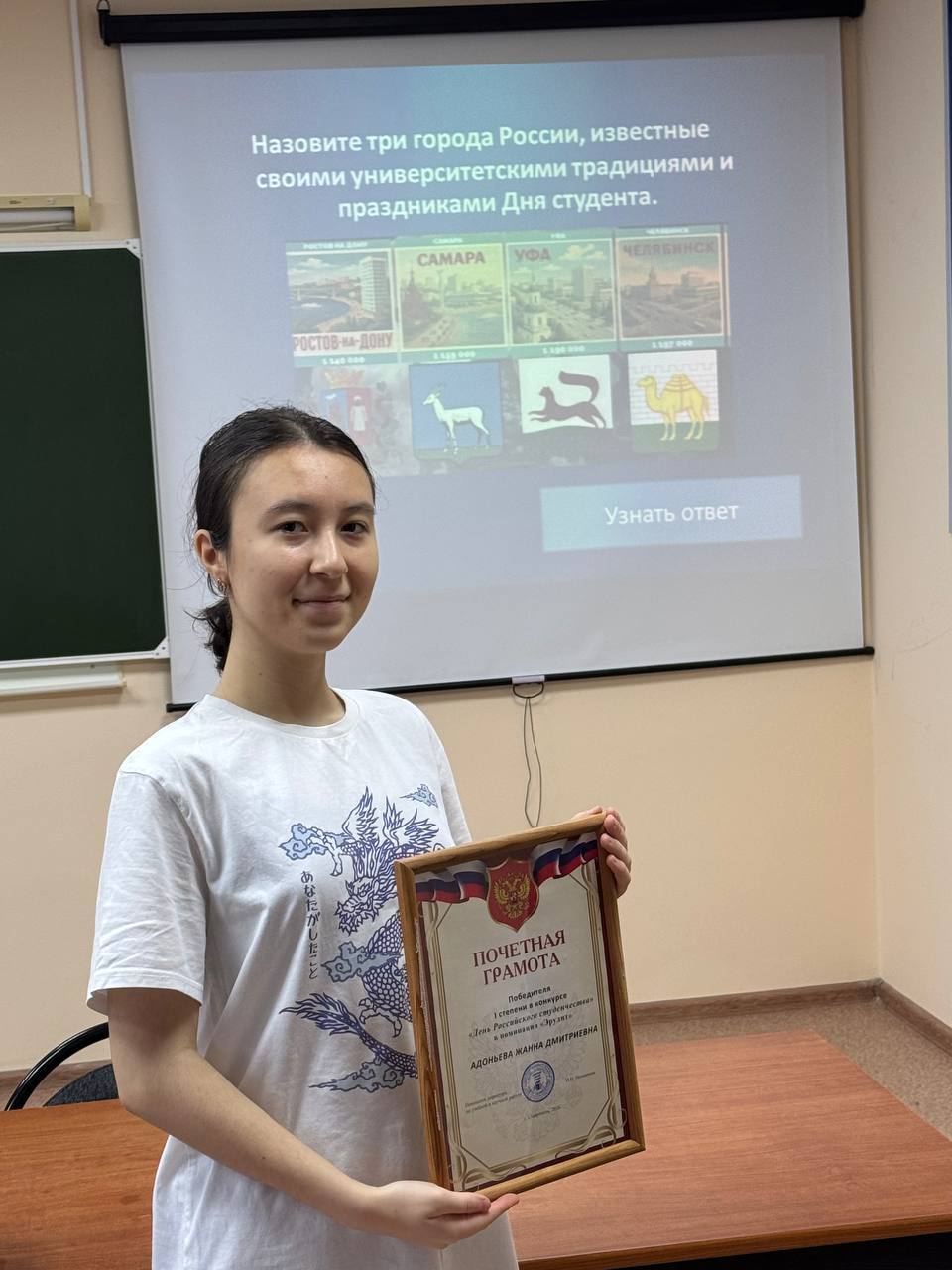 Победителем викторины стала студентка 1 курса специальности «Юриспруденция» Адоньева Жанна.
