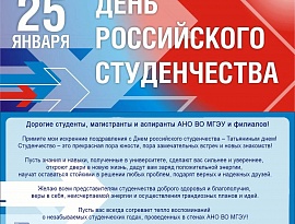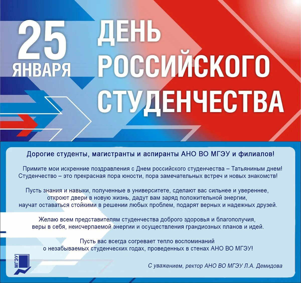 Поздравление ректора, профессора АНО ВО МГЭУ Демидовой Л.А. с Днем российского студенчества - 2026