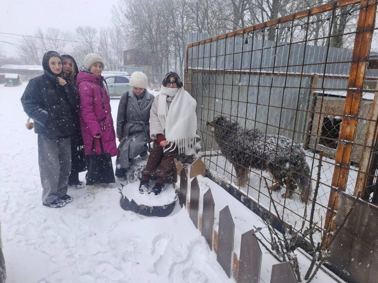 Молодые активисты привезли корм, необходимые предметы ухода за животными, теплые подстилки для четвероногих обитателей.