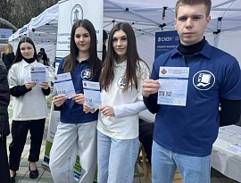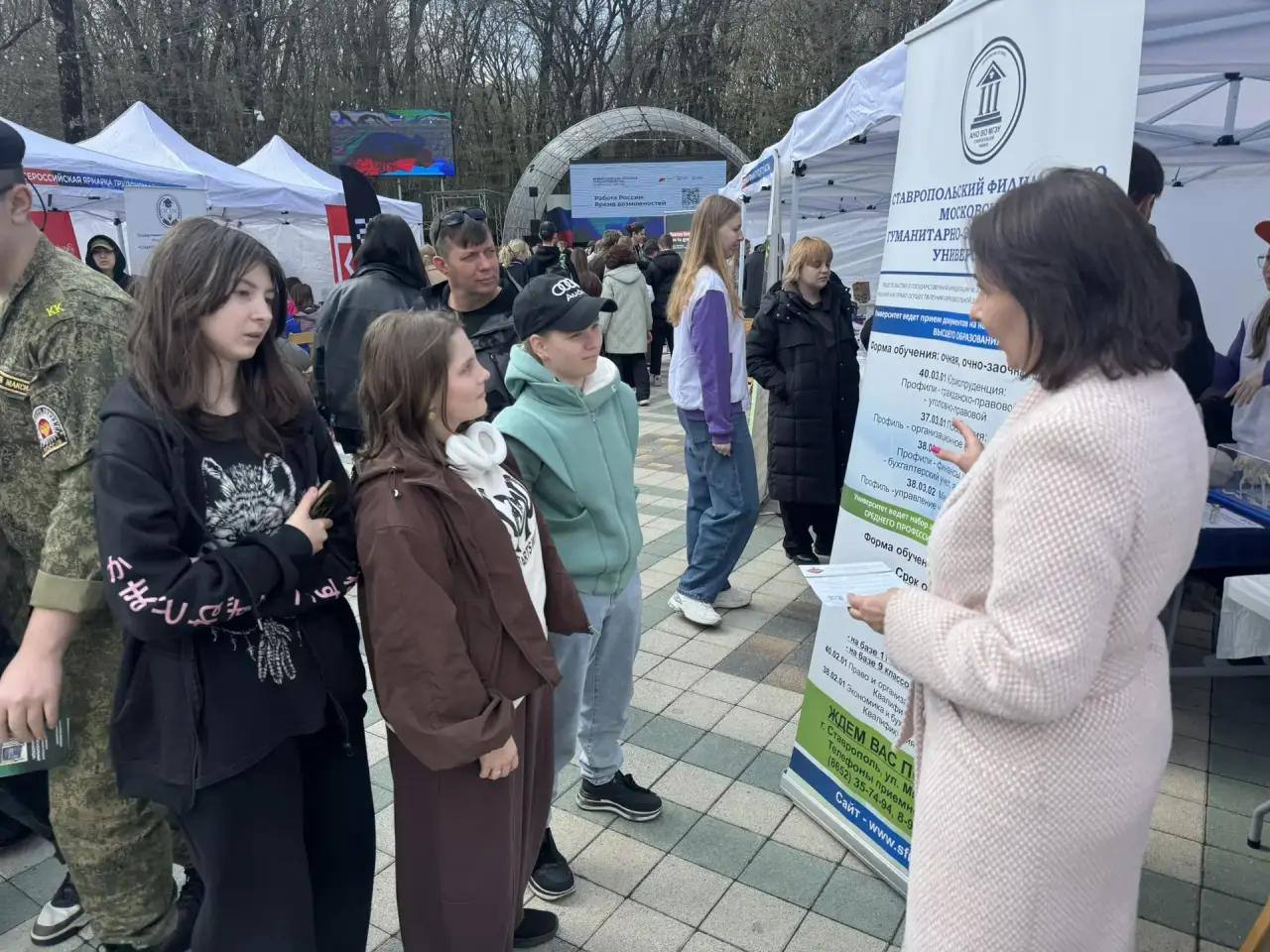 17 апреля 2026 года в рамках профориентационной работы студенты Ставропольского филиала МГЭУ совместно с заведующим кафедрой экономики и управления Юровой Н.Б. приняли участие в региональном этапе Всероссийской ярмарки трудоустройства «Работа в России. Время возможностей».