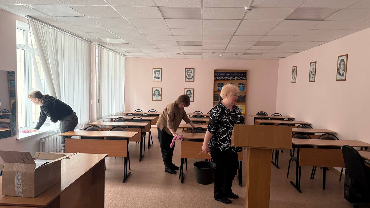 Вооружившись необходимым инвентарем, сотрудники с удовольствием приводили в порядок филиал.