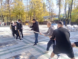 Студенты и преподаватели собрались в парке Победы, чтобы поучаствовать в мероприятиях посвященным этому дню. В ходе мероприятия студенты приняли участие в спортивных мероприятиях и мероприятиях направленных на логику.