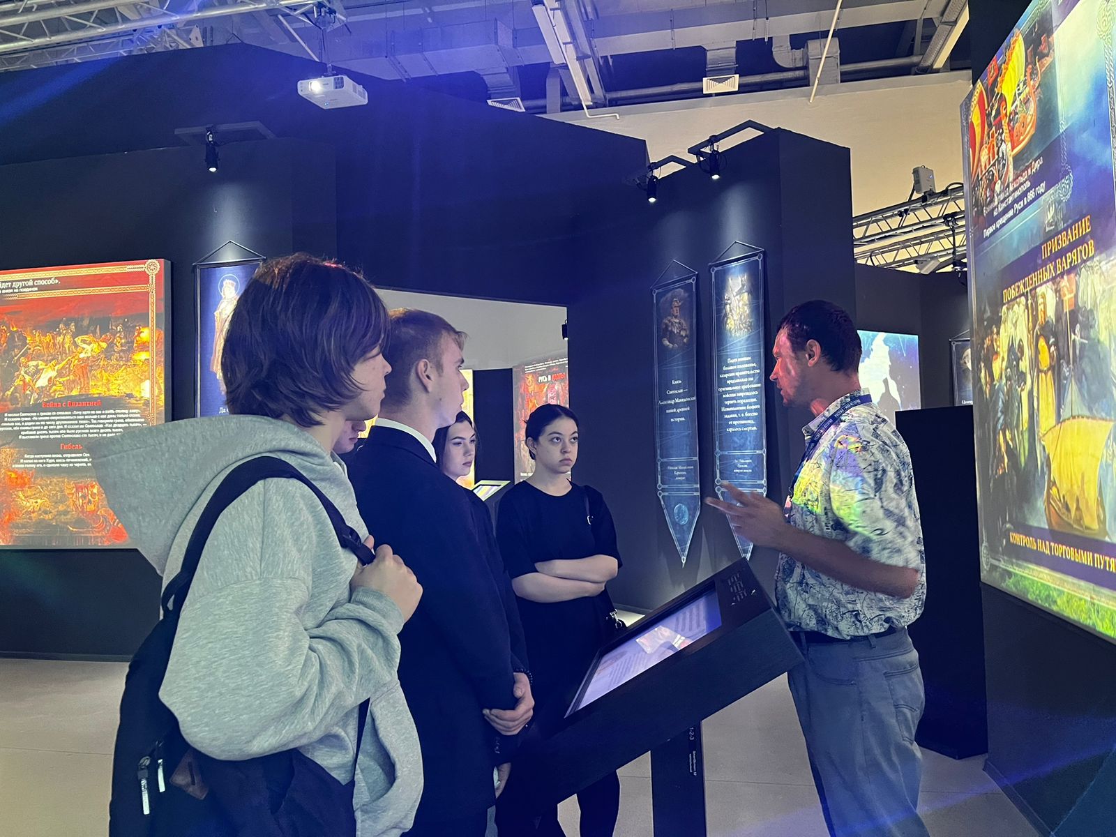 Особенно понравилась студентам выставка «От великих потрясений до великой Победы (1917-1945)». Масштаб и накал событий в России в первой половине ХХ века беспримерны, исключительны. Две мировые войны, три революции, ломка вековых устоев, массовые репрессии... И в то же время — это эпоха великих надежд, невиданного энтузиазма, творческого труда, время выдающихся открытий и достижений в области промышленности, науки, образования, литературы и искусства.